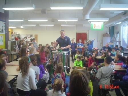 Thursday we had a special presentation from Duke Energy about renewable and non-renewable resources. The show included many tips on how to save resources. Here is 4th grade getting ready to enjoy the show and watching the pirate presentation!