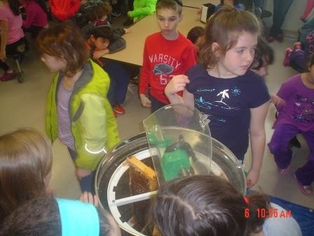 The second assembly of the day was a demonstration given by Mr. Stone (Molly’s dad) on how to get honey from bees. Mr. Stone left the bees at home, but he did bring some delicious samples of honey!