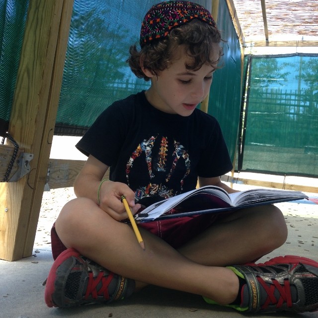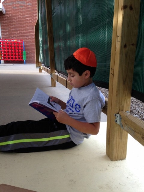 Today we took advantage of the beautiful fall weather and read The Mushroom Man in the sukkah! Students enjoyed the change of scenery and did a great job of ‘popcorn reading.’ Ask your child to tell you about the story!