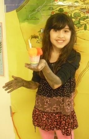 As part of the “virtual tour”, we slathered our hands with mud, we saw some hilarious you tubes of people trying to dive into the Yam Hamelach, unsuccessfully I might point out and as a “mazkeret” (souvenir), we created “delicious” salt sundaes.